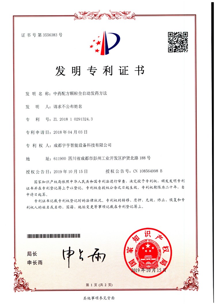 应用场景对接配方颗粒全自动发药方法ZL201810291324.3
